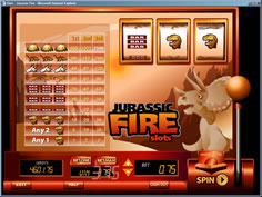 Jurassic Fire is single pay line slot game. The objective of this game, as in any other slot machine, is to match symbols in a line to a winning combination. There is not real strategy in slots; rather this game is based on pure chance. Payouts differ depending on what symbols match a winning combination on a line.
