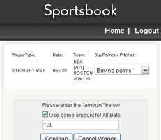 This type of wager is available for football and basketball. This is for the bettor who not only can predict which team will win the game, but by how many points. Your wager is capped from 1 point to a maximum of 10 points, and the wager you risk cannot exceed your available balance. On this type of wager, you risk $110 for every $100 wagered.