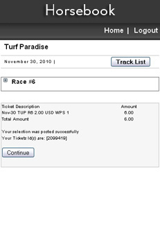 If the wager is NOT correct, click the 'Delete Ticket' button and start over. Deleted wagers will not be recorded.