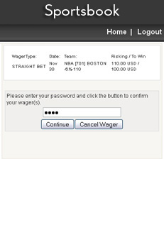 Your betting lines will be displayed, check to make sure they are correct, then enter the amount you want to bet and press continue